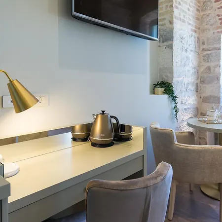 A Split városi hotel szobái vasaló eszközökkel és klímaberendezéssel, valamint mini hűtőszekrénybárral, tea- és kávéfőző berendezéssel felszereltek. A fürdőszobában fürdőkád, külön WC és zuhanyzó biztosított fürdőlepedőkkel és papucsokkal együtt. A Split városi ingatlan szobákat kínál kilátással a tengerre.